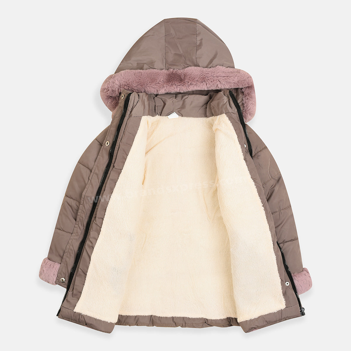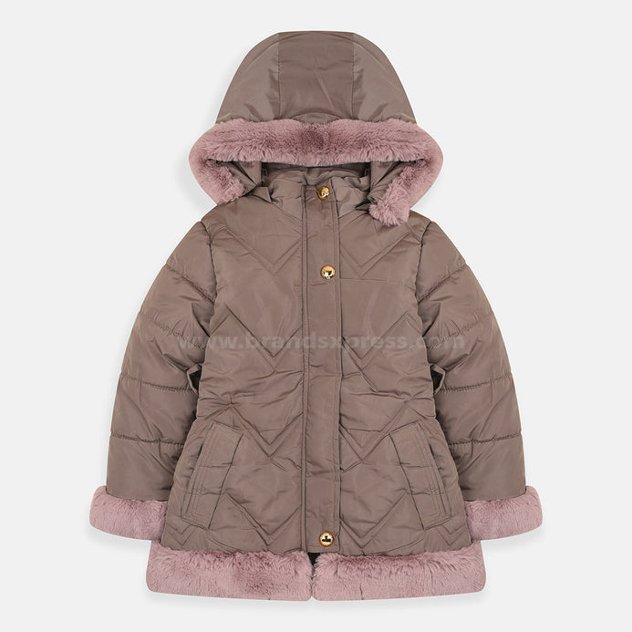 FD Sports Furr Edges Quilted Brown Long Puffer Jacket 7976
