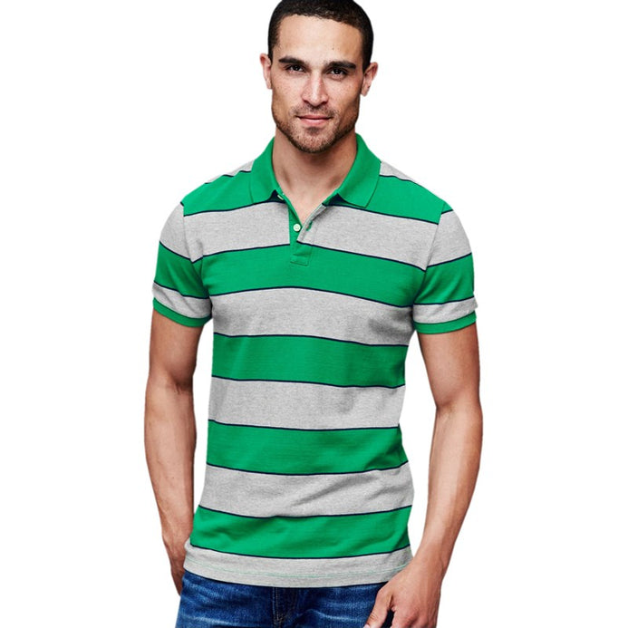 GAP Green And Grey Stripe Pique Polo Shirt (Label Removed)