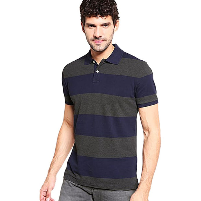 GAP Rugby Blue And Grey Stripe Pique Polo Shirt (Label Removed)