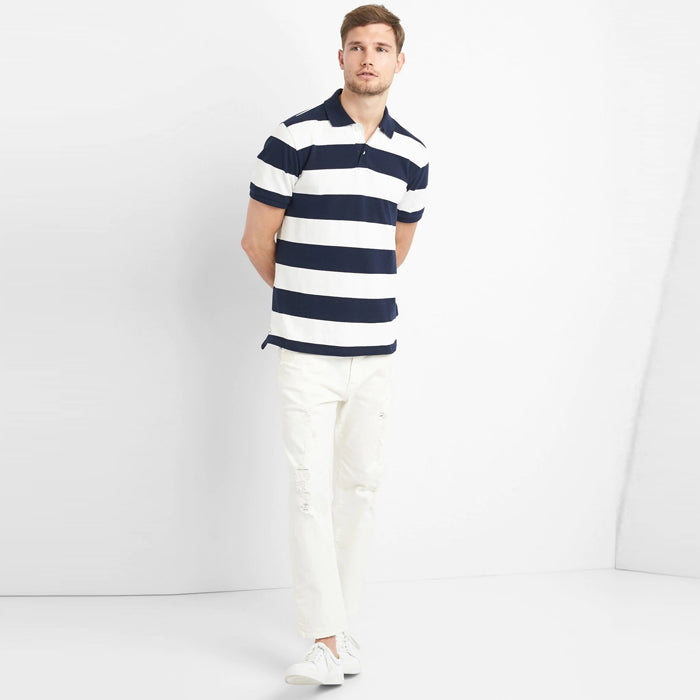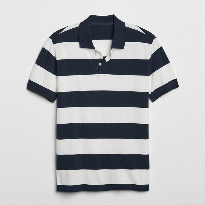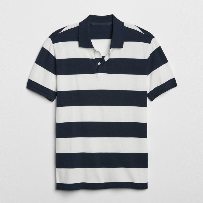 GAP Rugby Blue And White Stripe Pique Basic Polo Shirt (Label Removed)