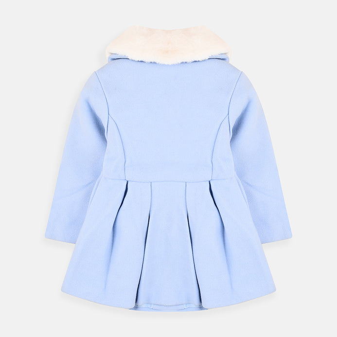 GDKY Fur Neck Flower Embroidered Blue Wool Coat 7755