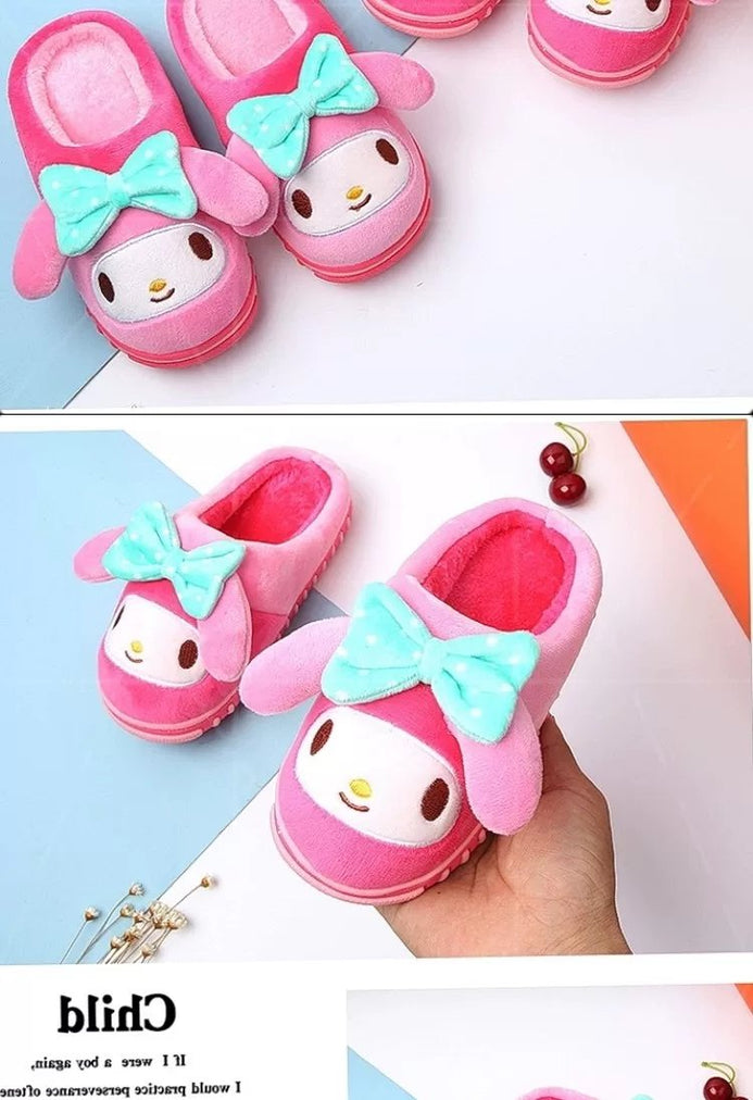 Green Bow White Face Warm Pink Winter Slippers 8324