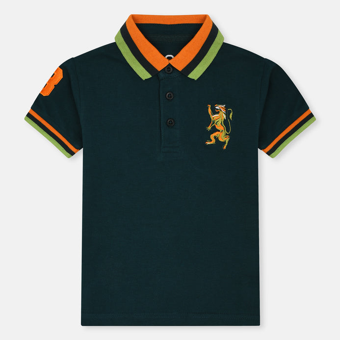 GRD Embroided Lion Logo Flag Green Polo 11106