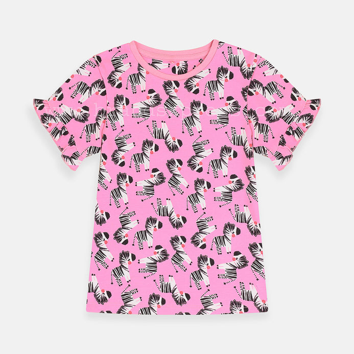 GRG All Over Zebra Printed Frill Sleeves Pink Top 6157