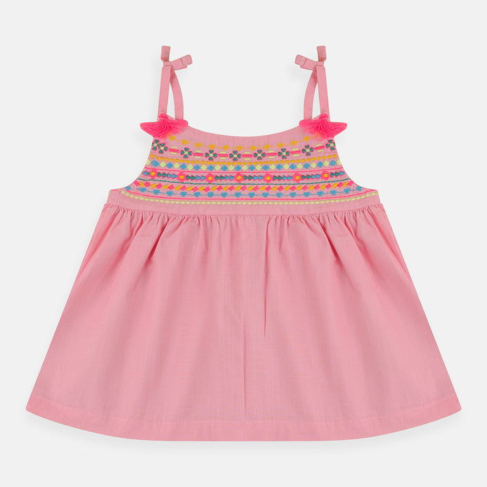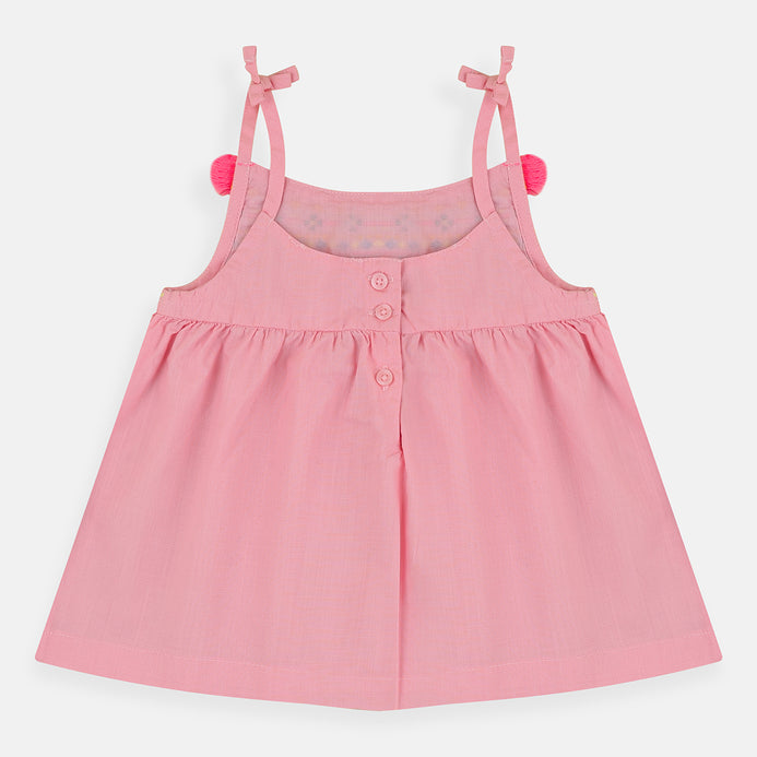 GRG Shoulder Stripe Front Embroidery Sleeveless Pink Cotton Frock 4166
