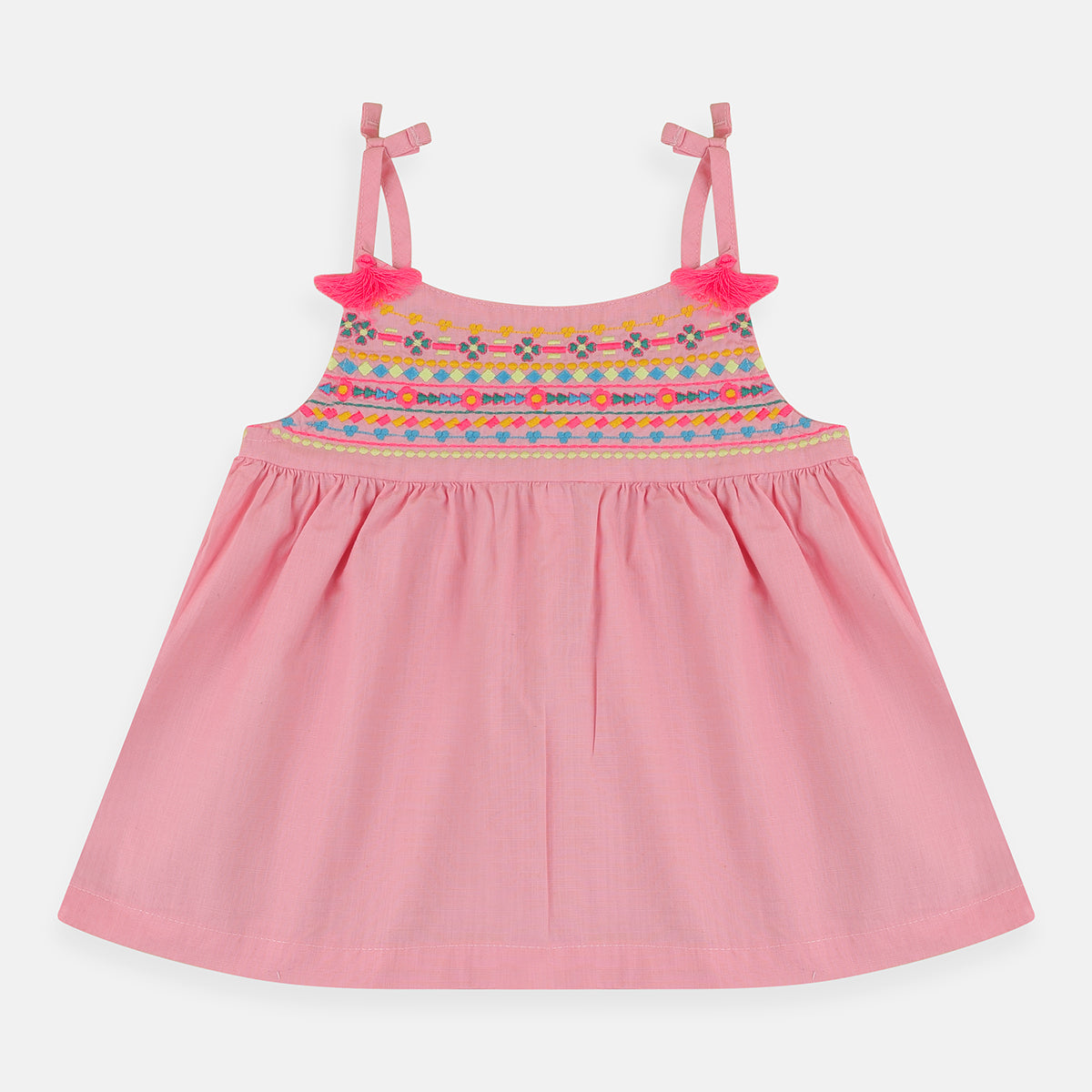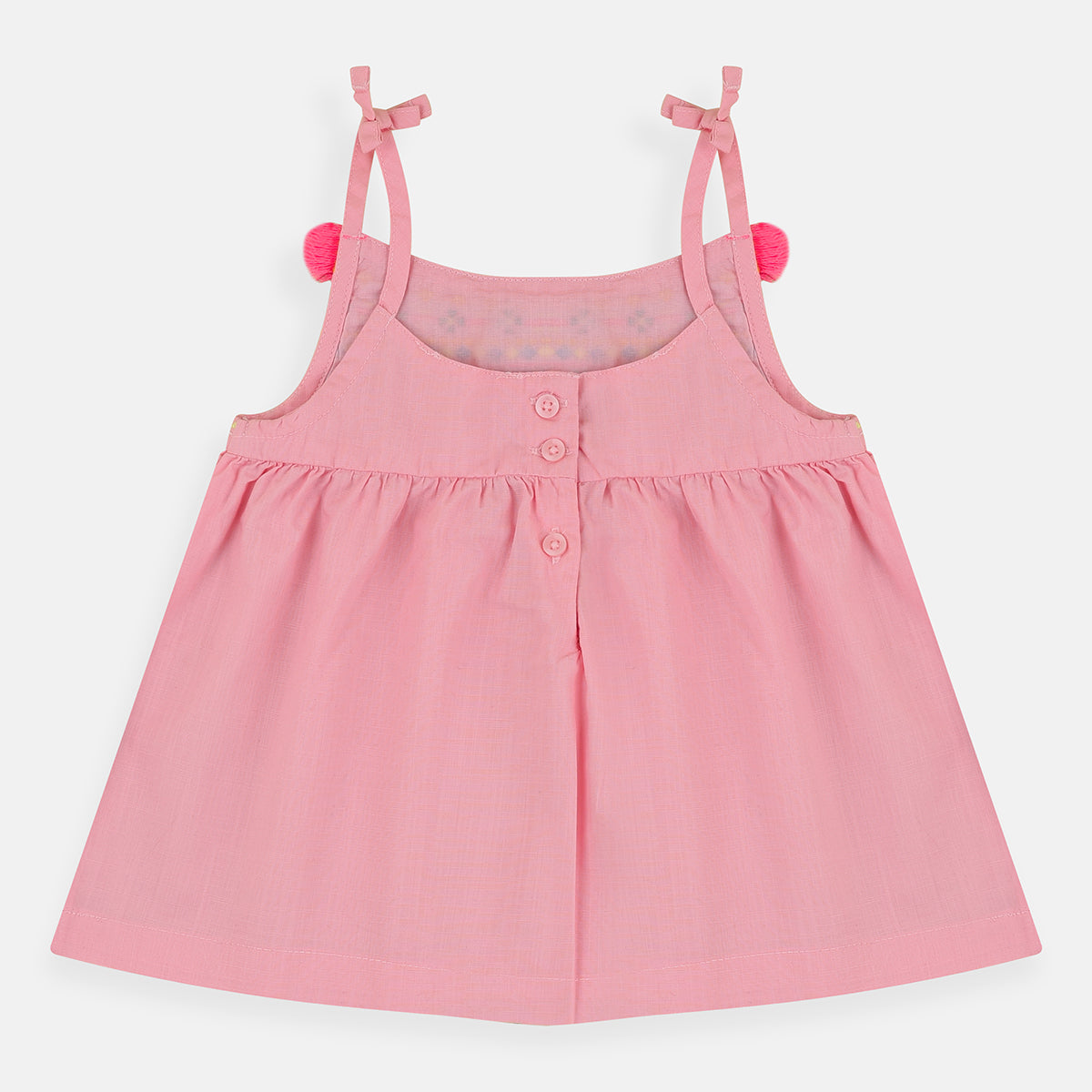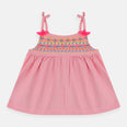 GRG Shoulder Stripe Front Embroidery Sleeveless Pink Cotton Frock 4166