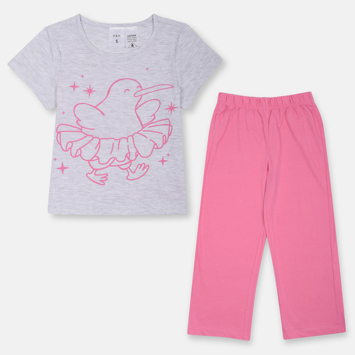 H&H Dancing Hen Grey & Pink Top & Trouser 7461