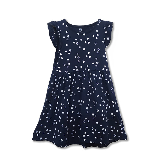 H&M All Over White Flowers Navy Blue Frock 11741