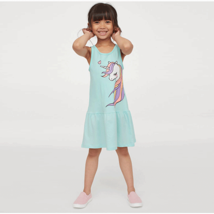 HM Big Unicorn Aqua Blue Sleeveless Frock 8777