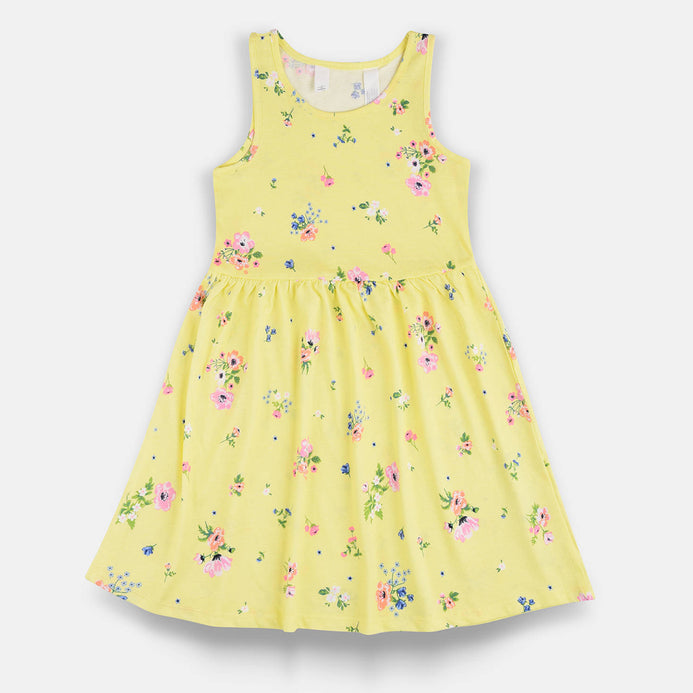 H&M Flower Printed Sleeveless Yellow Frock 1329