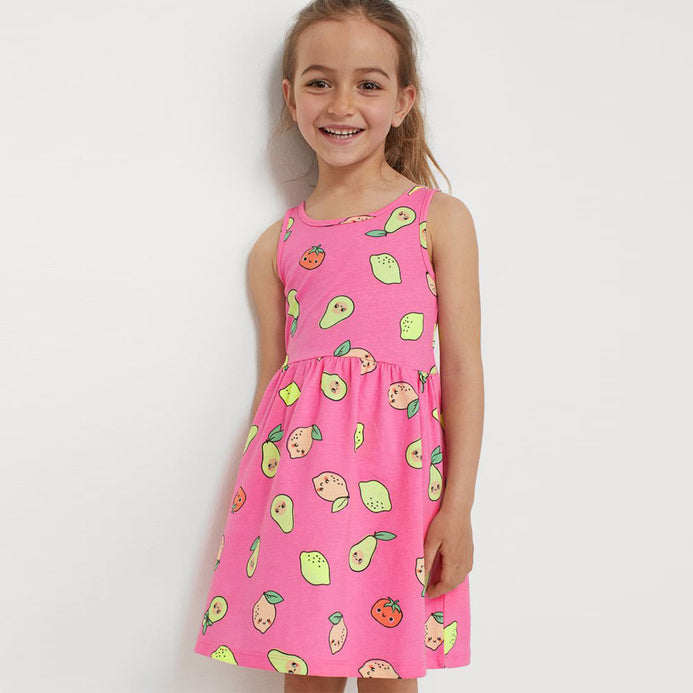 HM Cute Fruits Print Pink Sleeveless Frock 7049