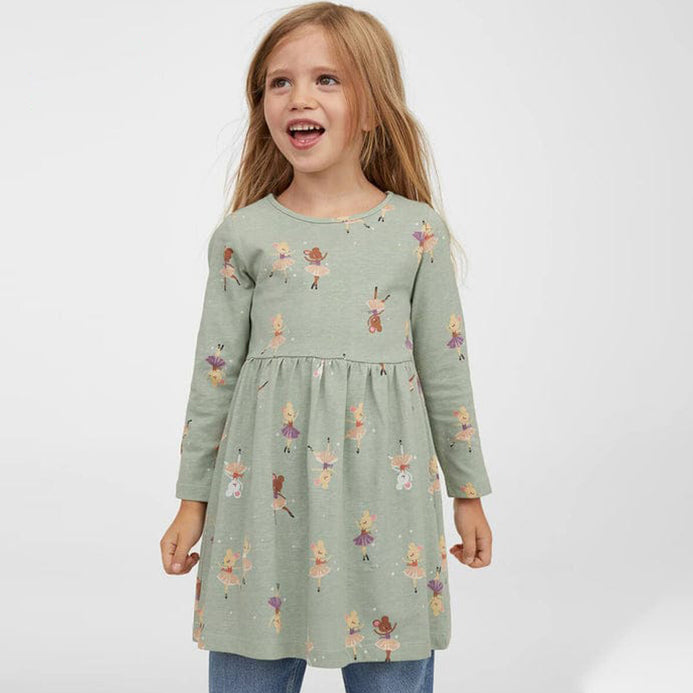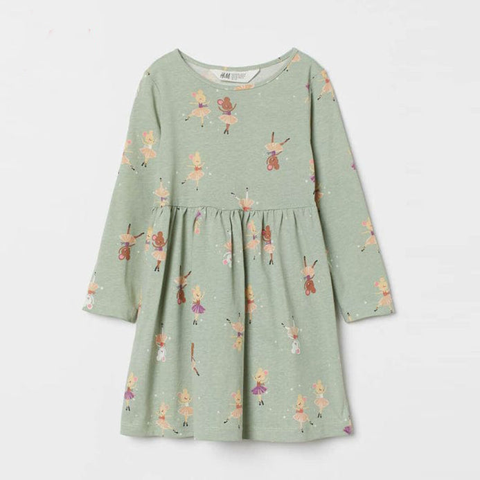 HM Dancing Mice Mist Green Full Sleeves Frock 12255