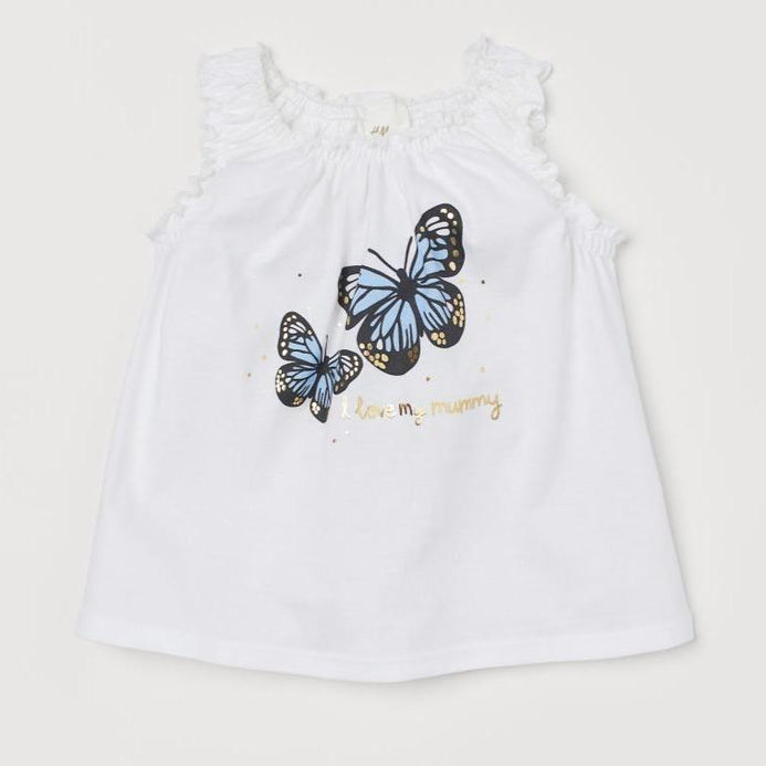 HM Frill Neck Foil Love Mummy Butterfly White Top 3951