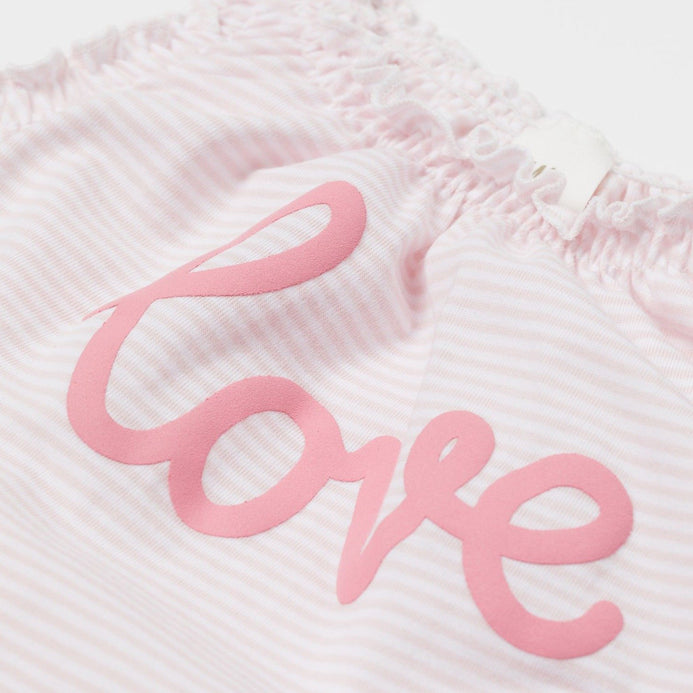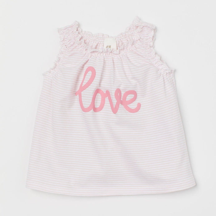 HM Frill Neck Love Print Pink Stripe Top 3950