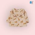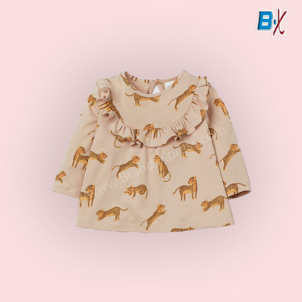 HM Happy Leopards Neck Frill Full Sleeves Brown Top 9328