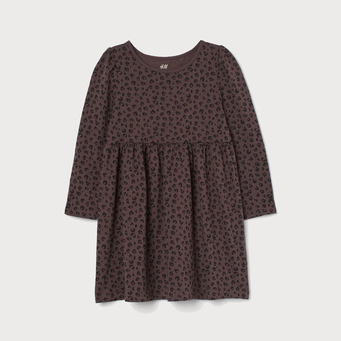 HM Leopard Print Chocolate Brown Full Sleeves Frock 9786