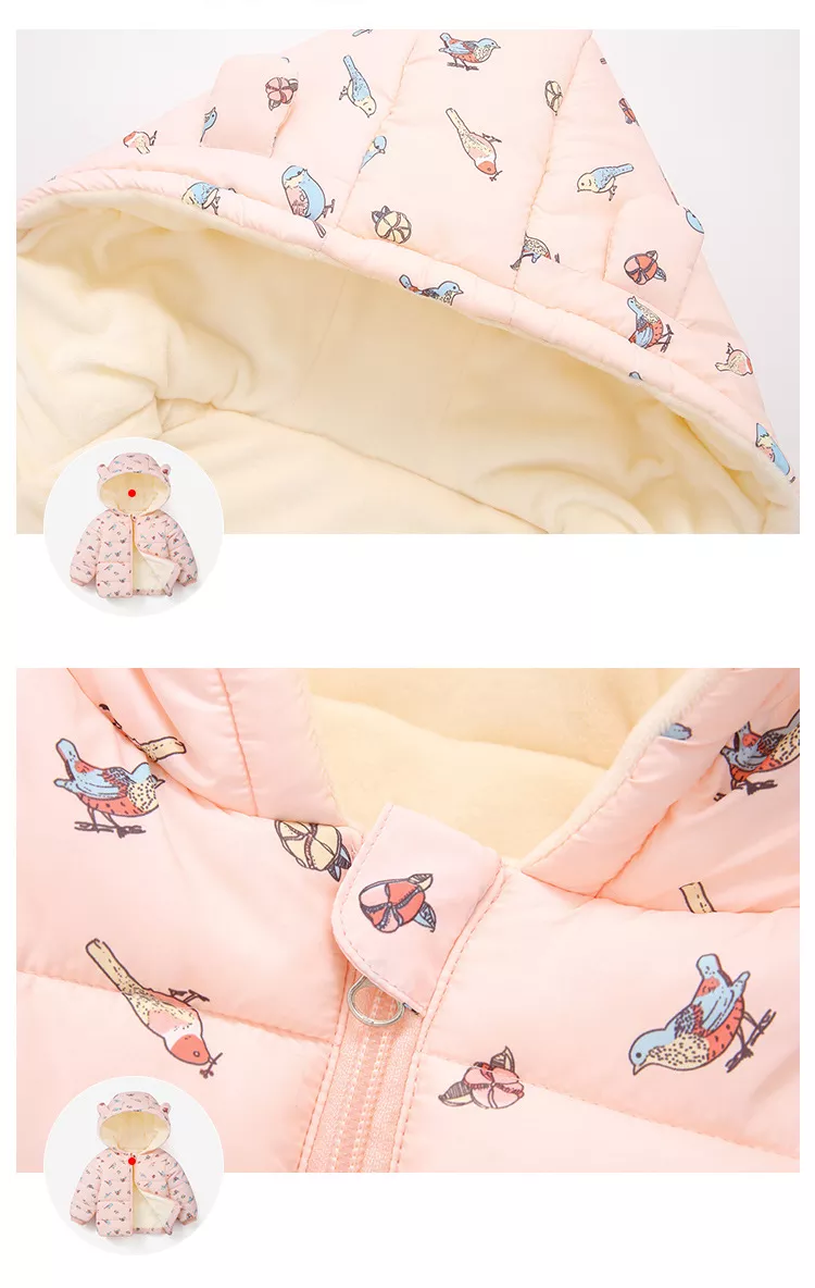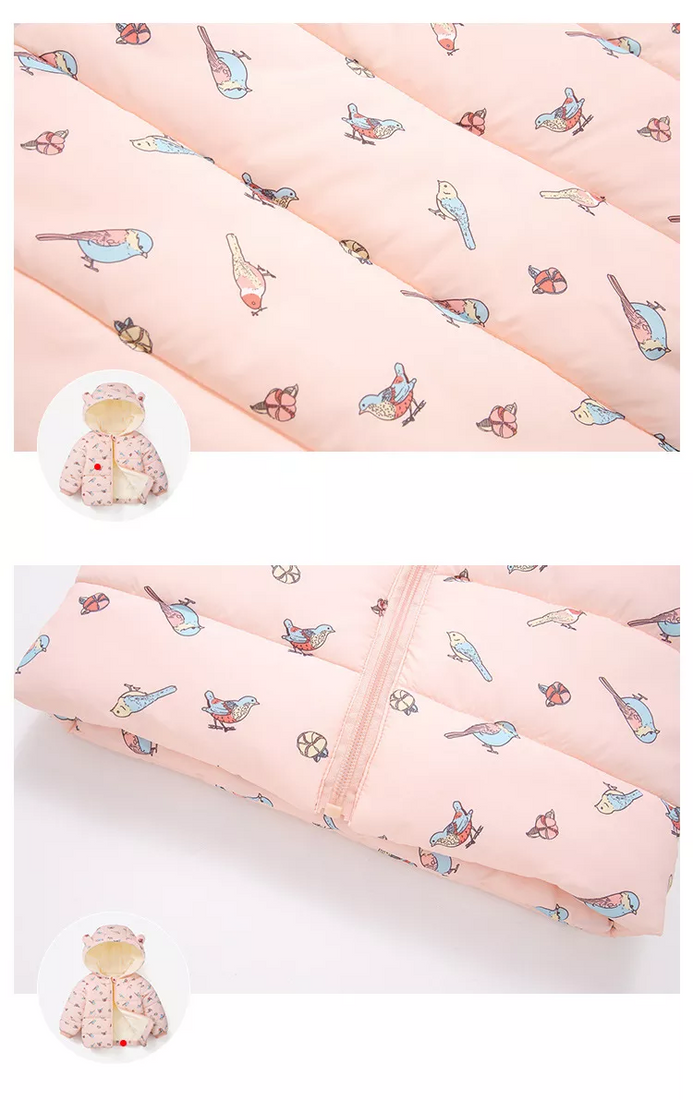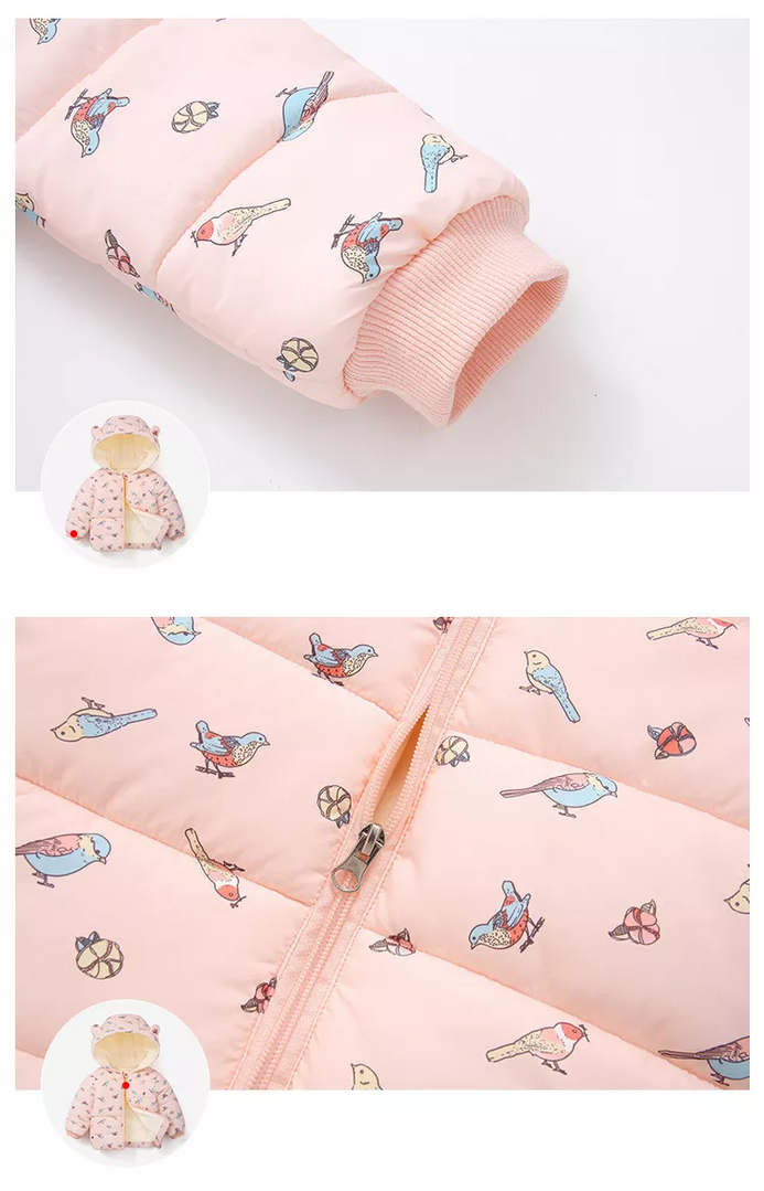 HYM Multi Birds Bear Hooded Fleece Inner Puffer Jacket 7665