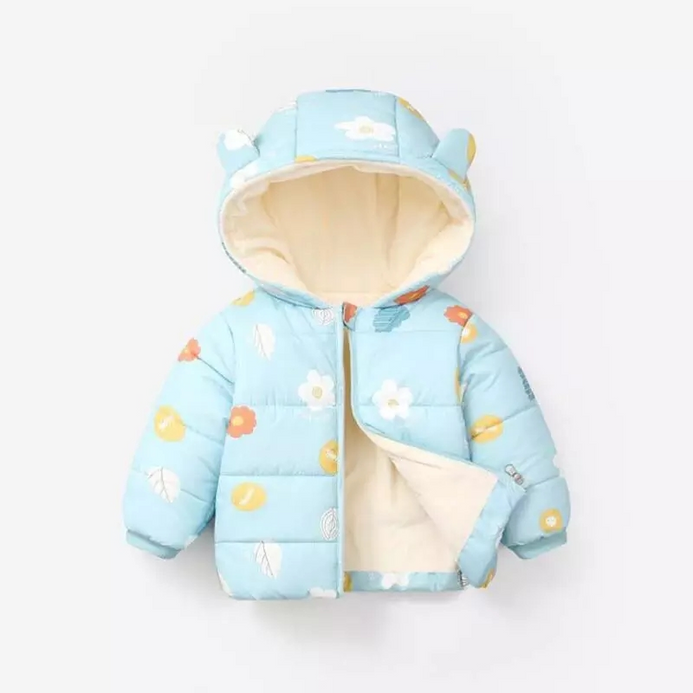 HYN Happy BB Flower Print Light Blue Fleece Inner Puffer Jacket 7655