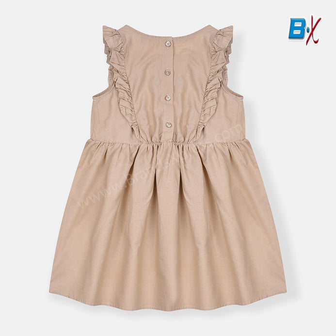 IMPI Printed Flower Frill Beige Cotton Frock 8958