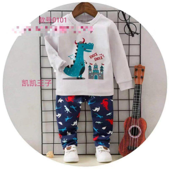 KAI KAI Wangzi Knock Knock Monster Print Light Grey 2 Piece Set 2589