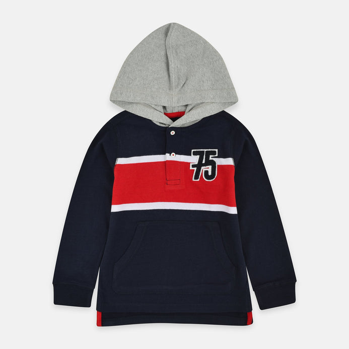 Kd Coll 75 Embraided Navy Blue Red & White Stripes Hoodie 2957