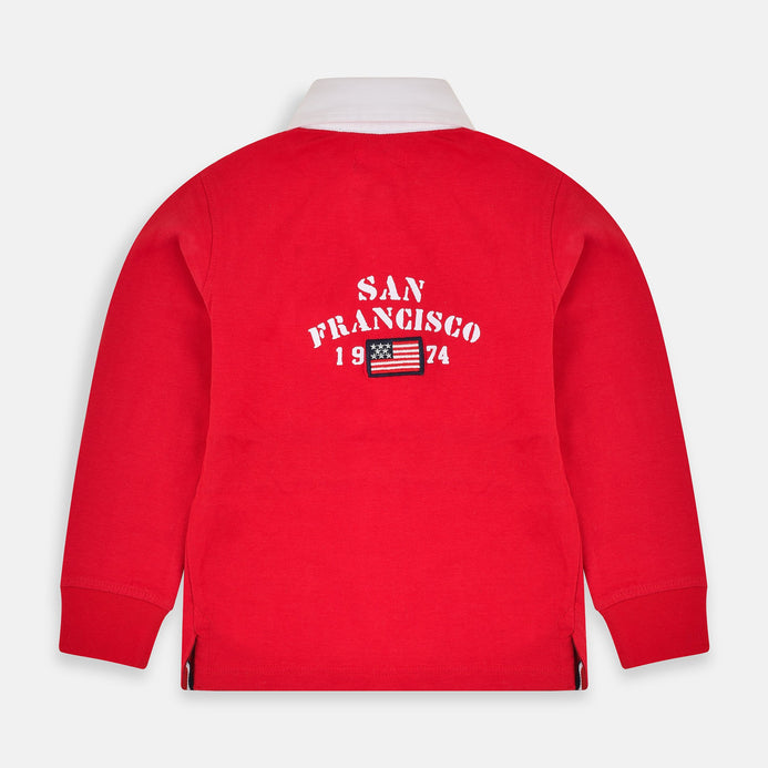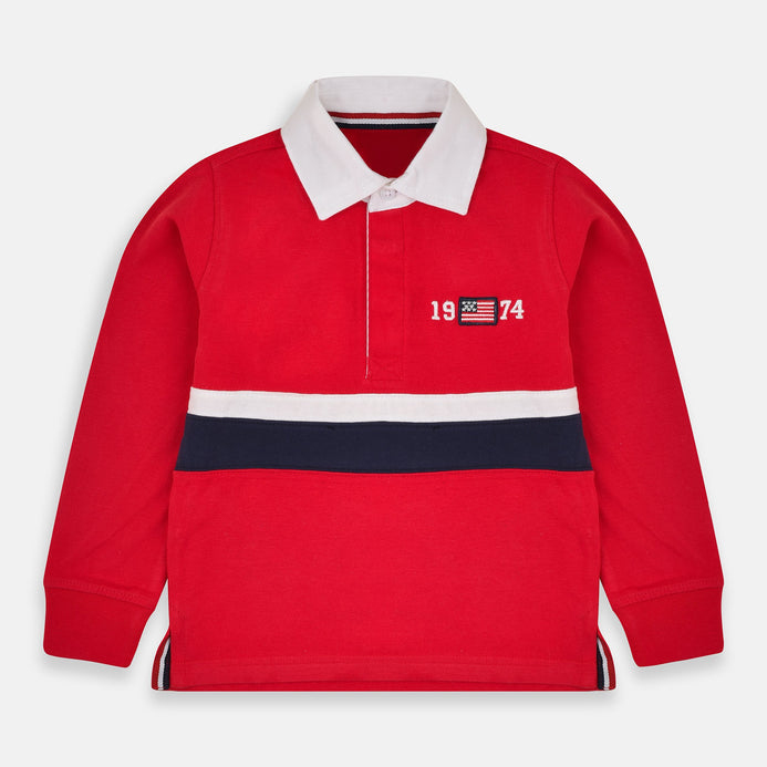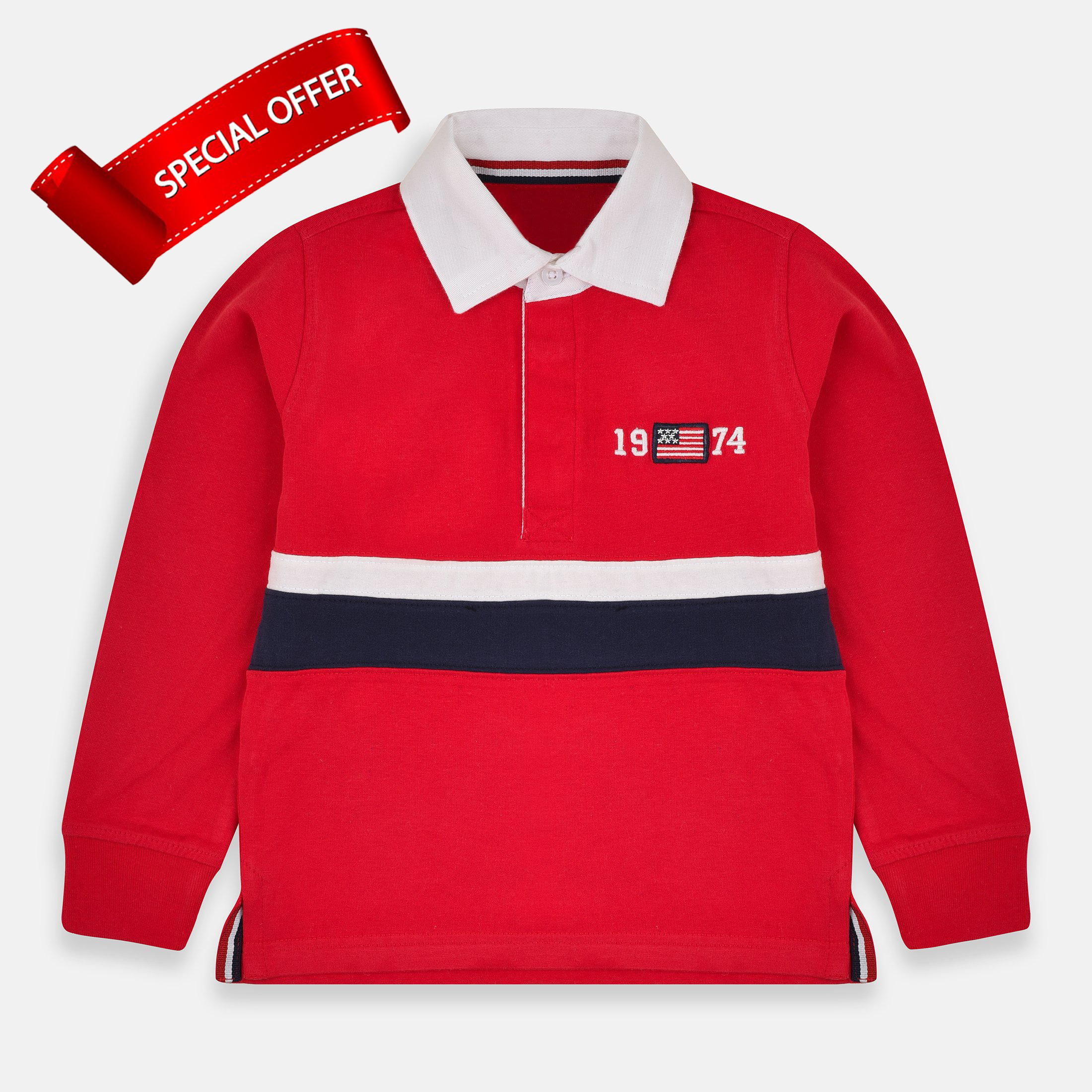 KD Coll American Flag White & Blue Stripes Red Full Sleeves Polo Shirt 2965