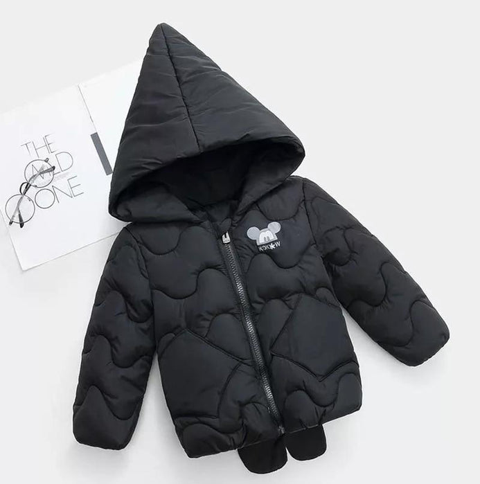 KDW Mickey Logo Style Pocket Black Puffer Jacket 7656