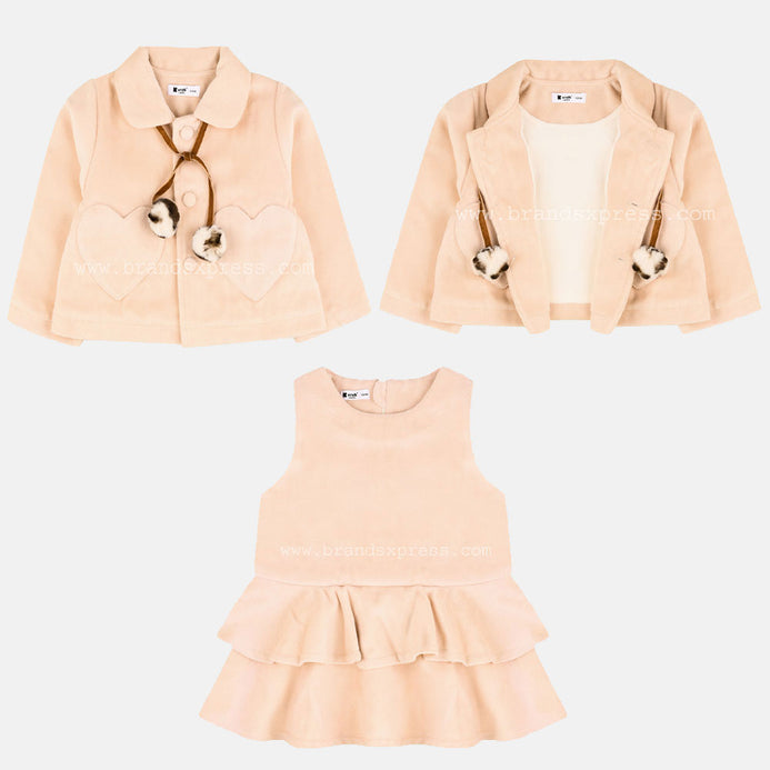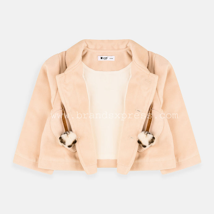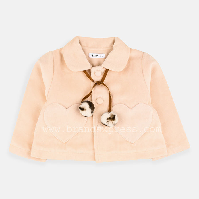 KNDX Warm Fleece Heart Pocket Short Cream Jacket 2 Piece Set 7753