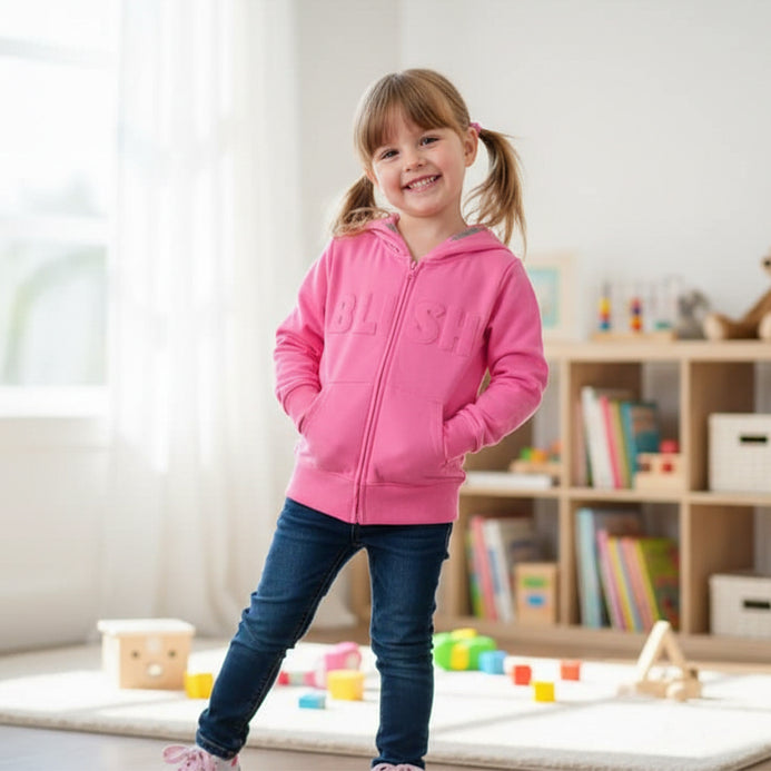 L&S Blush Embossed Cool Girl Batch Powder Pink Terry Zipper Hoodie 14374