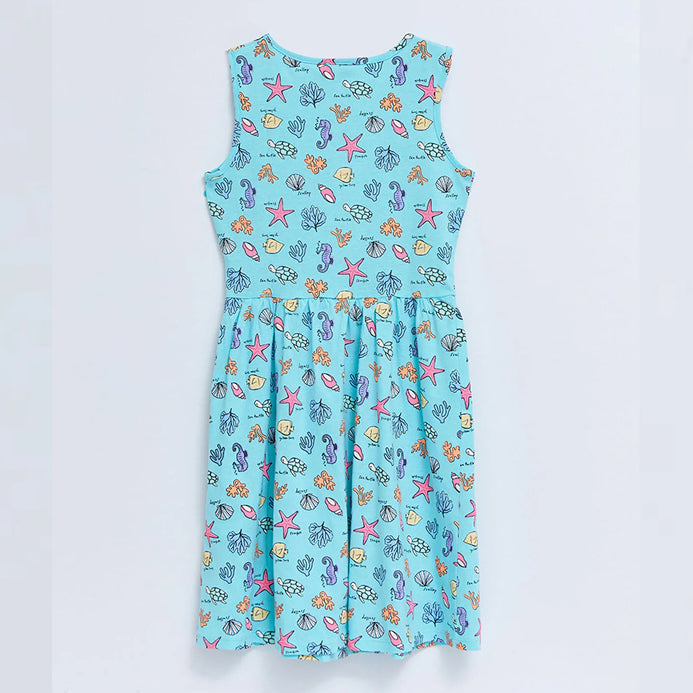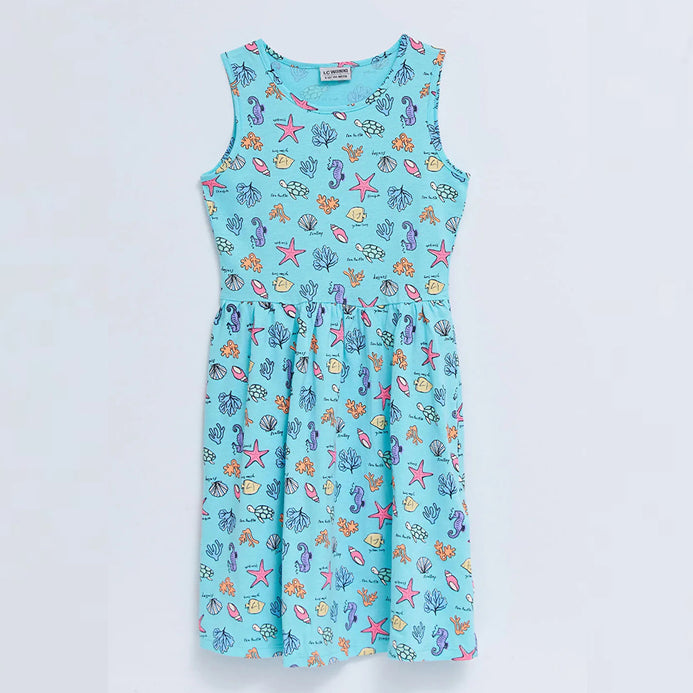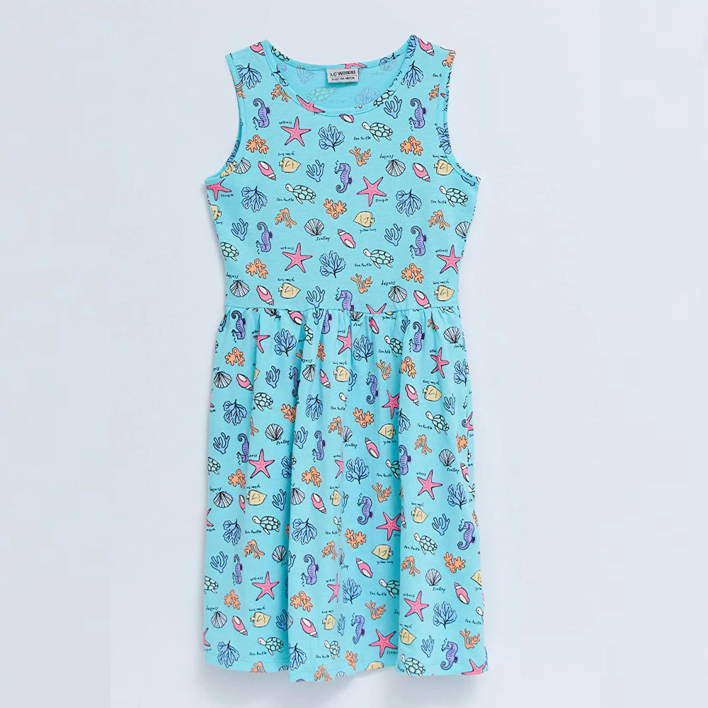 LCW Sea Animals Print Turquoise Sleeveless Frock 11737