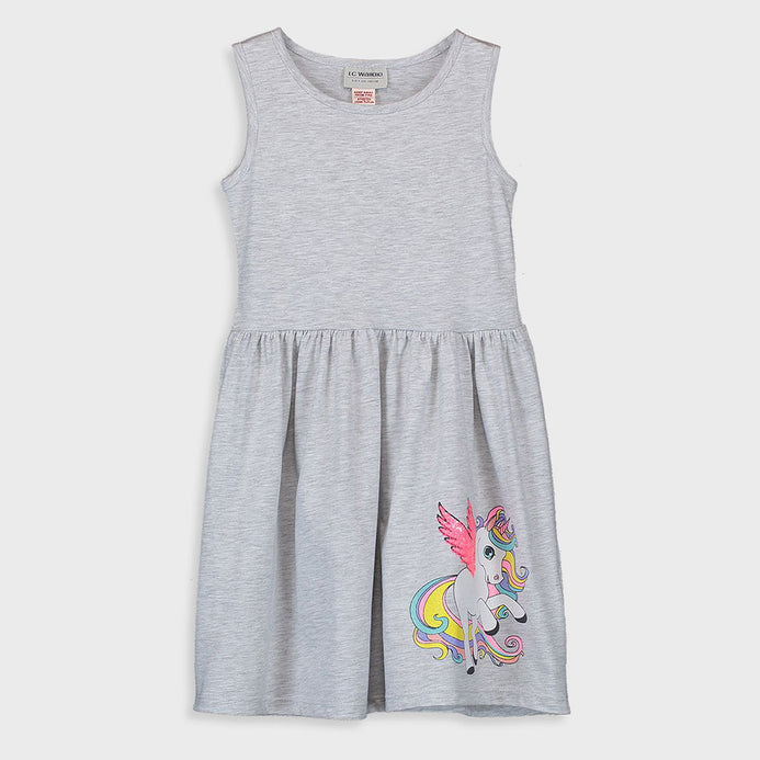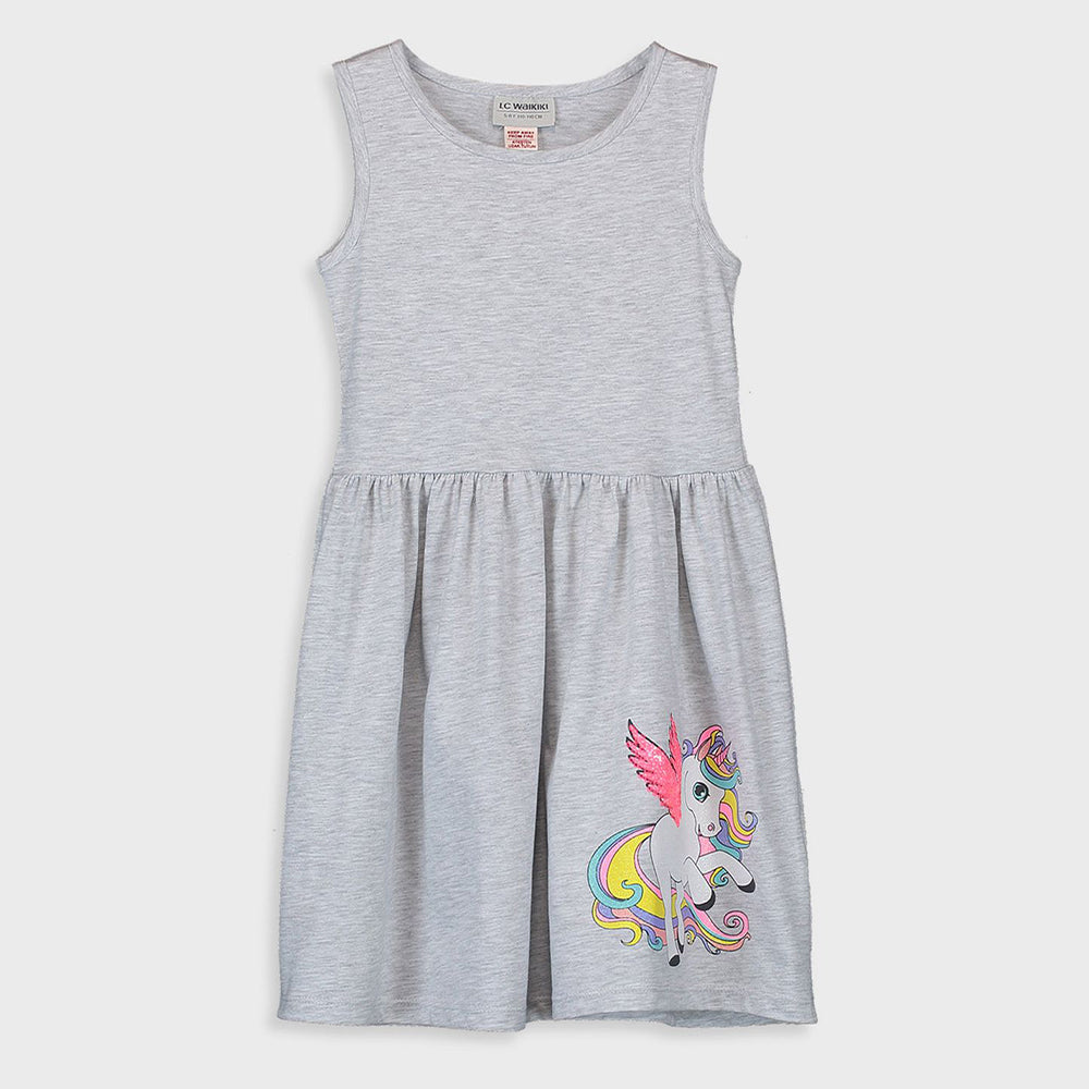 LCW Glitter & Sequin Unicorn Grey Sleeveless Frock 11747