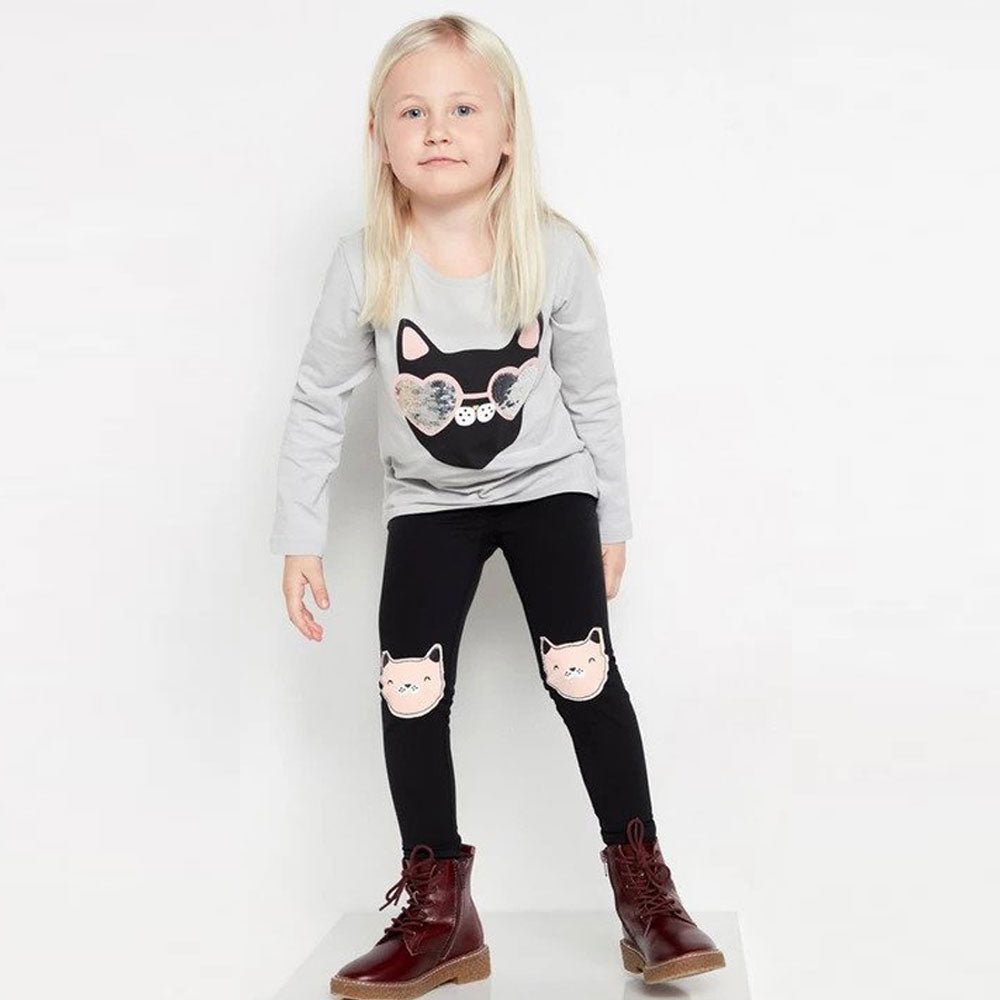 LDX Black Legging with Cat Face Knee Patch 1789