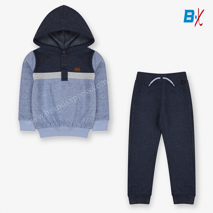 LE Block Blue Hoodie Fleece Track Suit 9918