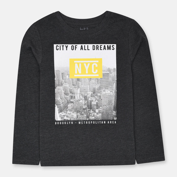 LH NYC Print Dark Grey Full Sleeves T Shirt 10378
