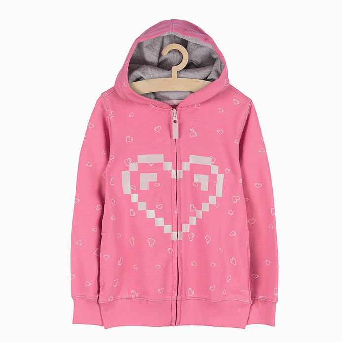 LS All Over Heart Print Pink Zipper Hoodie 8400