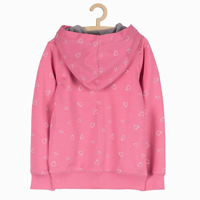 LS All Over Heart Print Pink Zipper Hoodie 8400
