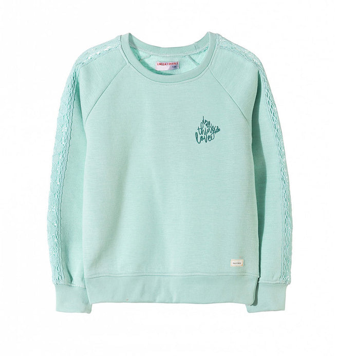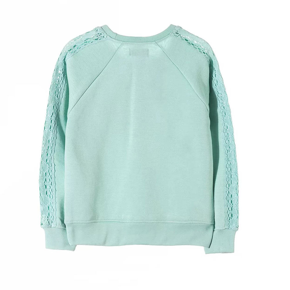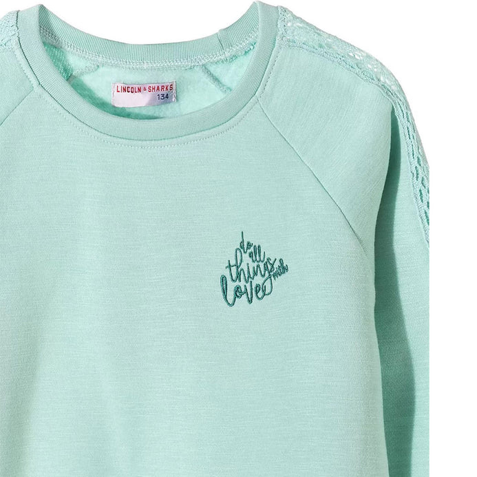 LS Do All Things Lace Shoulder Sea Blue Sweatshirt 3481
