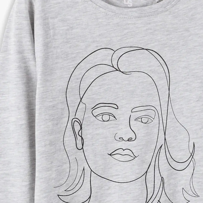 LS Face Friends Grey Full Sleeves T-Shirt 8352