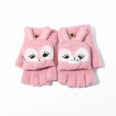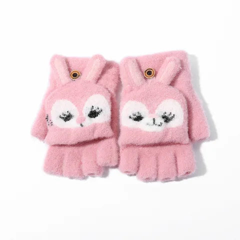LU Soft & Warm Dark Pink Rabit Glooves With Finger Cover 12505