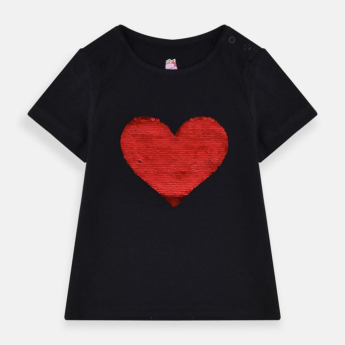 LUP Reversible Sequin Heart Black Top 3769