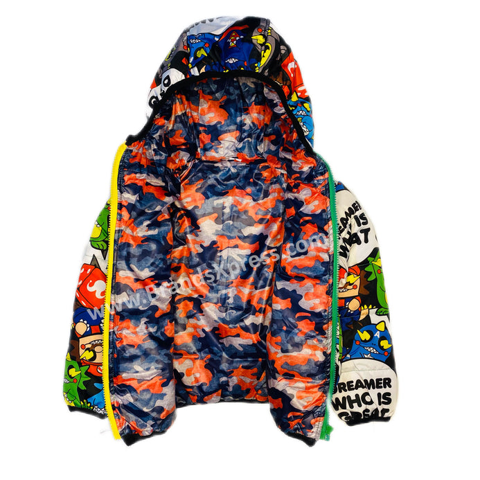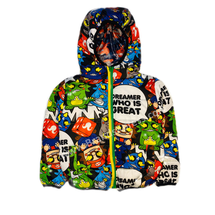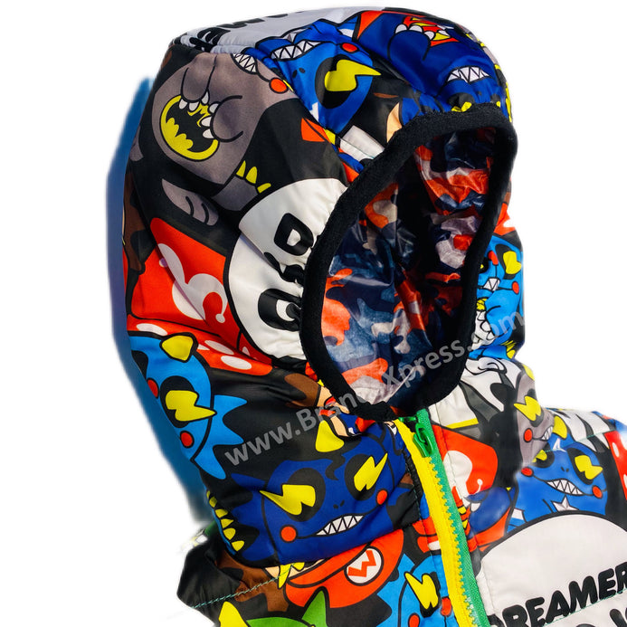 M Dreamer Cartoon Print Hooded Puffer Jacket 9808