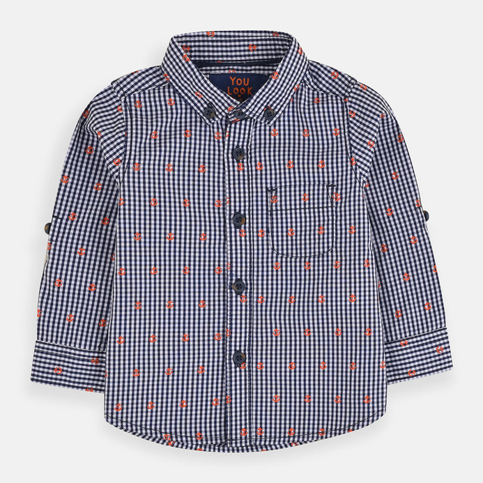 MC Black & White Check Anchor Print Full Sleeves Casual Shirt 3862
