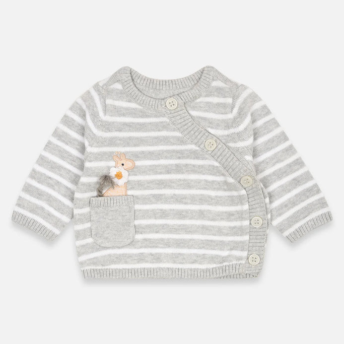 MC Side Buttons Giraffe Pocket Stripe Grey Sweater 11987