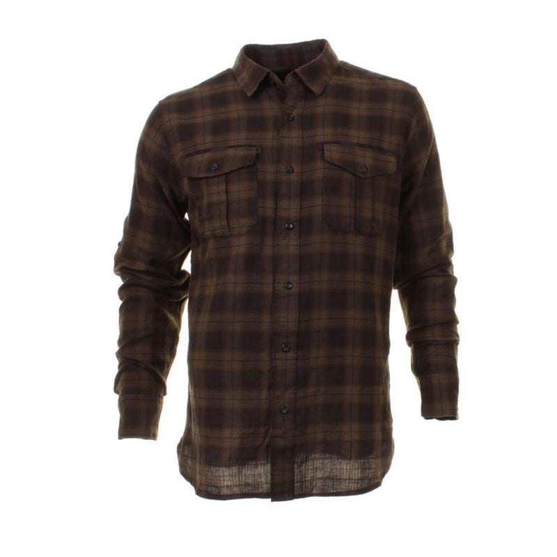Mens COL Long Sleeve Cotton Casual Check Shirt Single Cuff Brown
