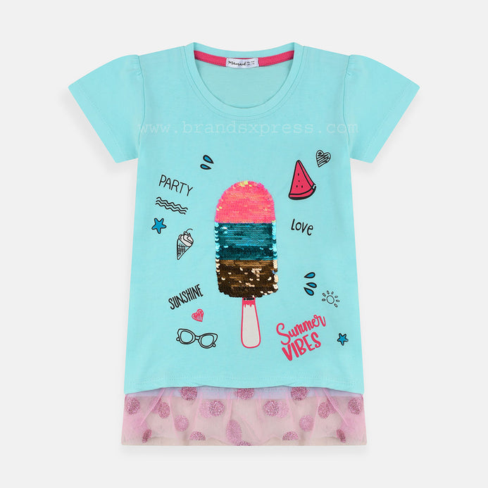 Mermaid Reversible Ice-Lolly Sky Blue Net Frill Top 7463