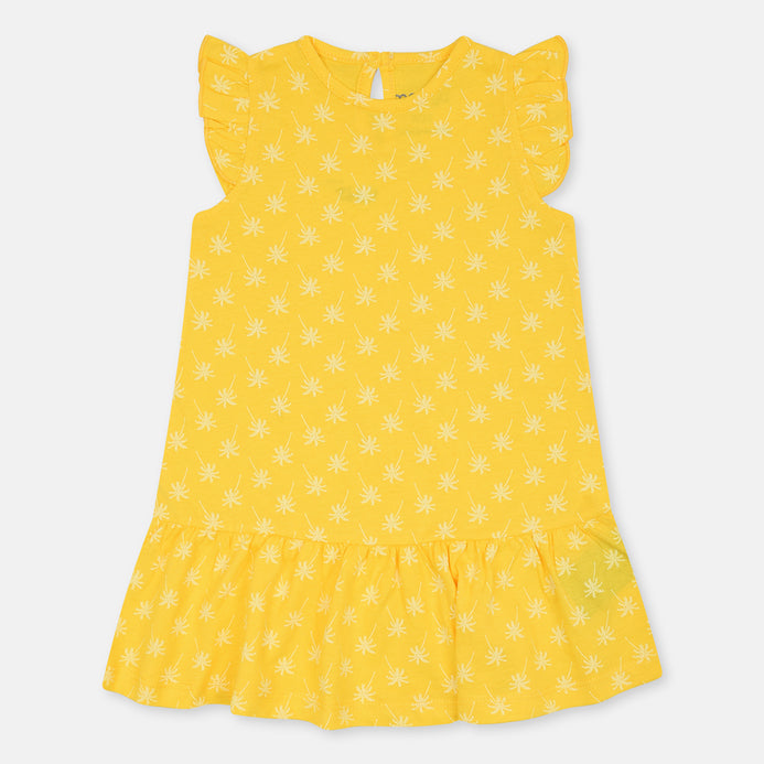 MNG All Over Palm Tree Print Sharp Yellow Frock 10983