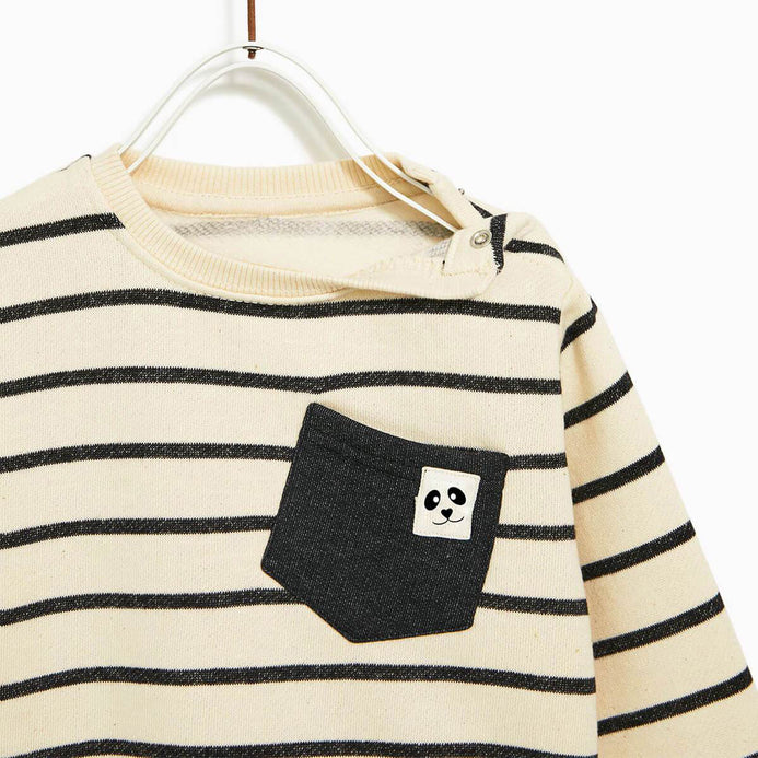 MNG Bear Patch Black Pocket Stripe Grey Sweatshirt 3369