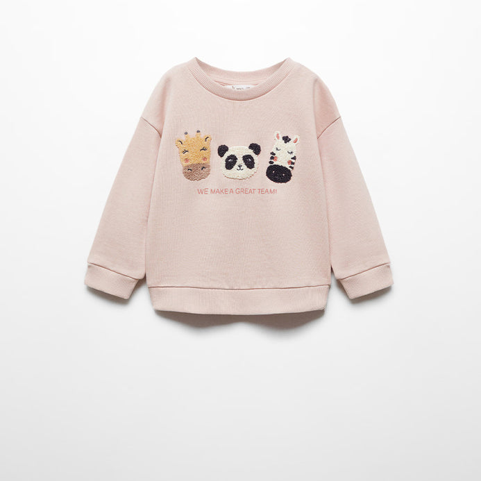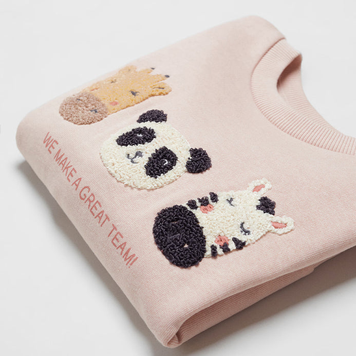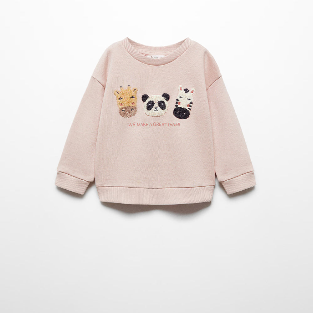 MNG Great Team Animal Embroided Pink Terry Sweatshirt 13406