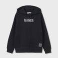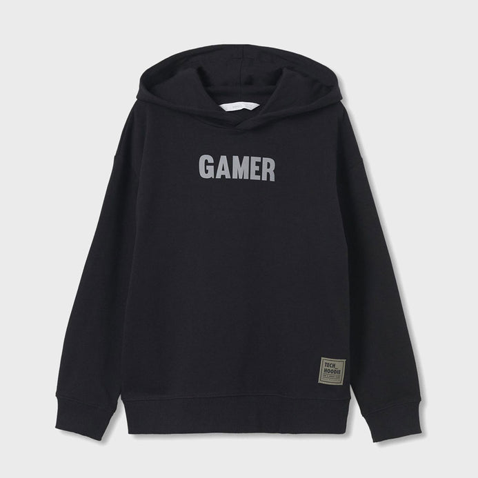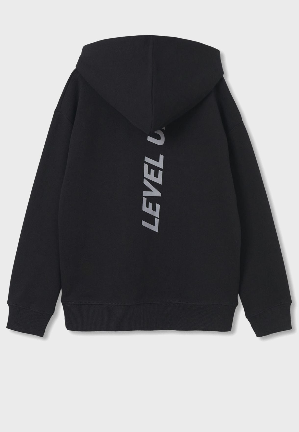 Organic cotton fabric. Cropped design. Rounded neck. Hood. Long sleeve. Frayed hem. Zip fastening.
