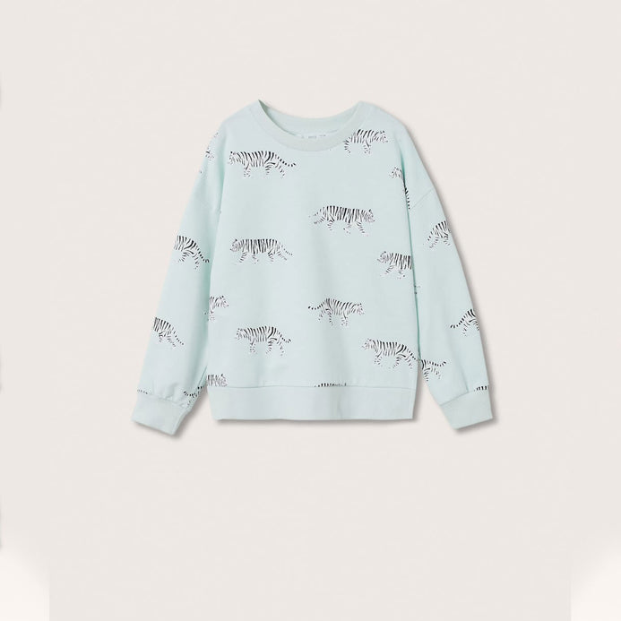 MNG White Tiger Print Soft Mint Sweatshirt 9878